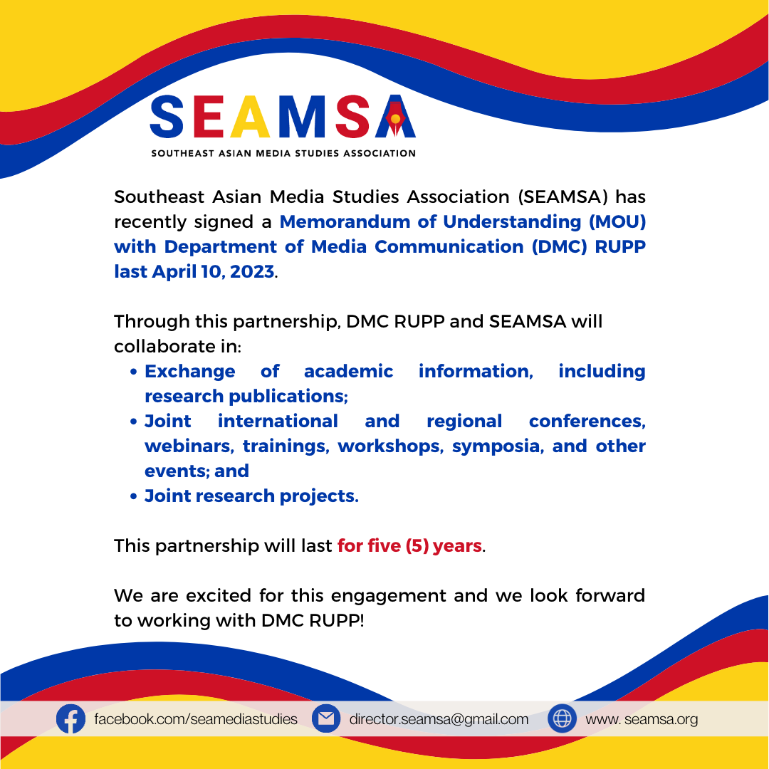 We are thrilled to announce that we have signed a Memorandum of Understanding (MOU) with the Department of Media and Communication (DMC) at Royal University of Phnom Penh (RUPP).
