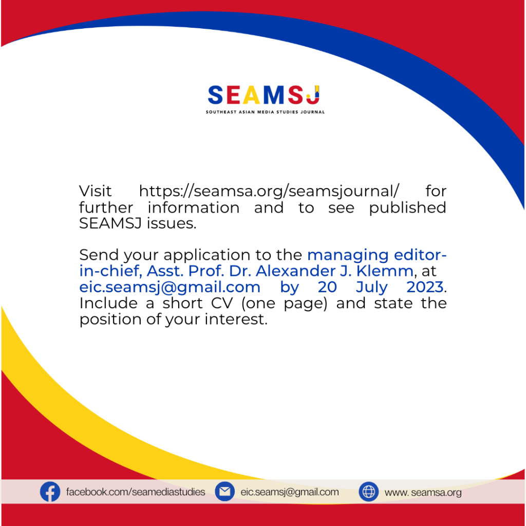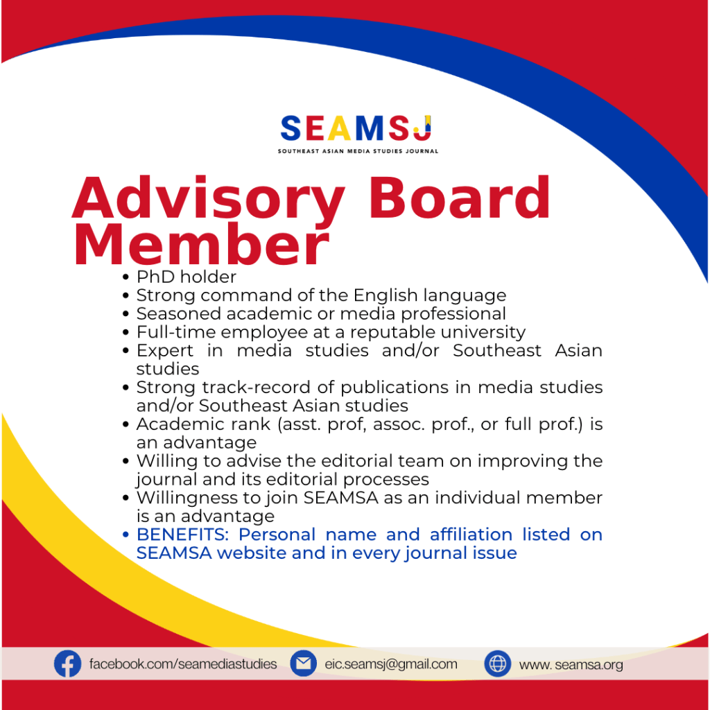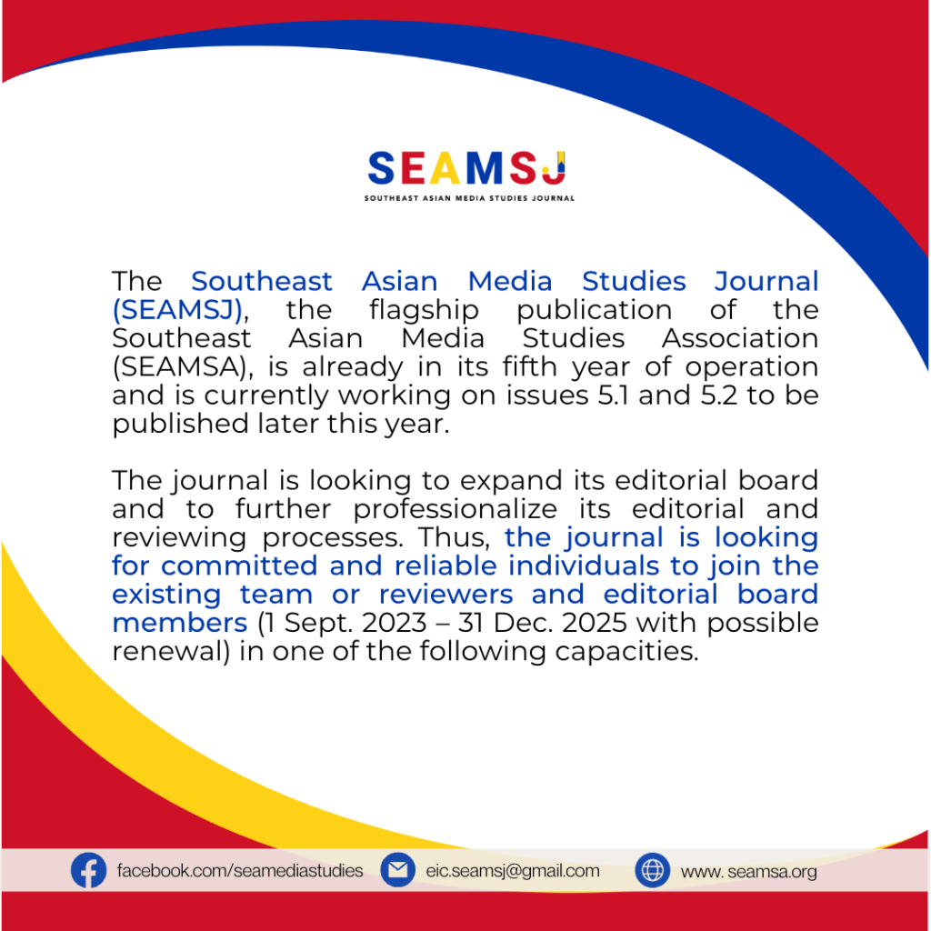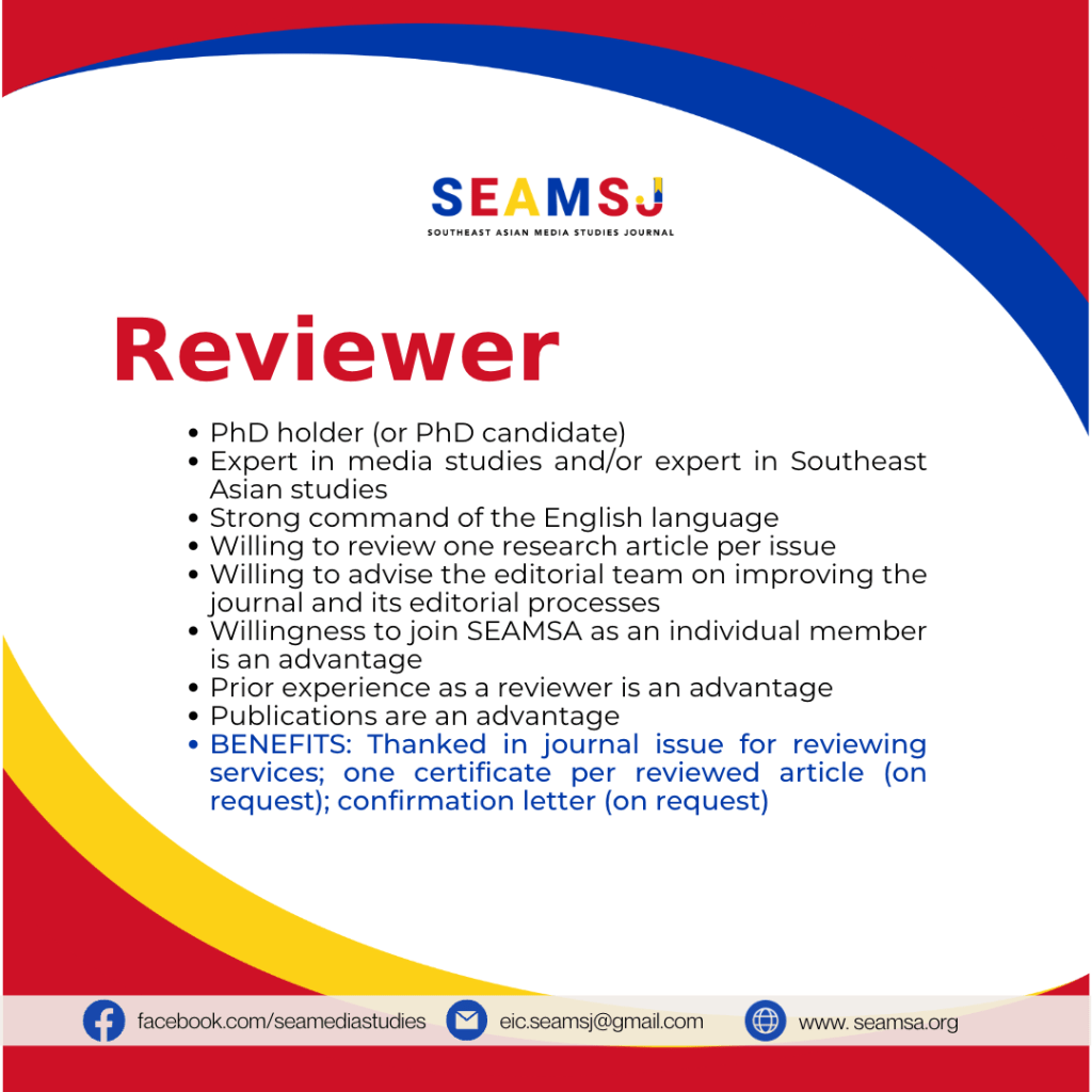 Call for Reviewers and Editorial Board Members for SEAMSJ Posted byseamsa30 Jun 202330 Jun 2023Posted inAnnouncements Share this: Click to email a link to a friend (Opens in new window) Email Related